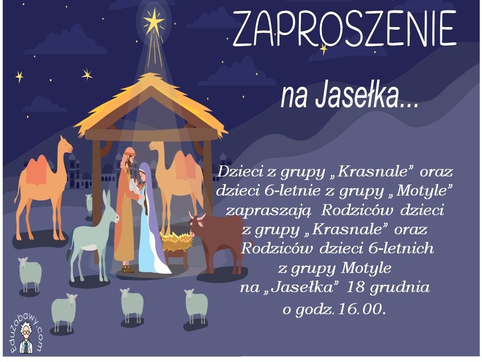 - 18.12. 2025r. – JASEŁKA DLA PRZEDSZKOLA GODZ. 10.00, JASEŁKA DLA RODZICÓW GODZ. 16.00 - ZAPROSZENI SĄ RODZICE SZEŚCIOLATKÓW Z GRUPY MOTYLE.